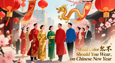 Certain colors like white and black are usually not worn during Lunar New Year because of the meaning those colors have. White is strongly associated with death and mourning; black is associated with negativity as well as death and mourning, alongside grey. Colors like red, yellow, gold and other vibrant colors are mostly worn during this time because of their good meaning. Gold or Yellow both represent wealth, royalty and fortune. Red is the most popular color worn during this day because it symbolizes luck, happiness and prosperity. Other bright colors like pink, orange and green are also associated with positivity.